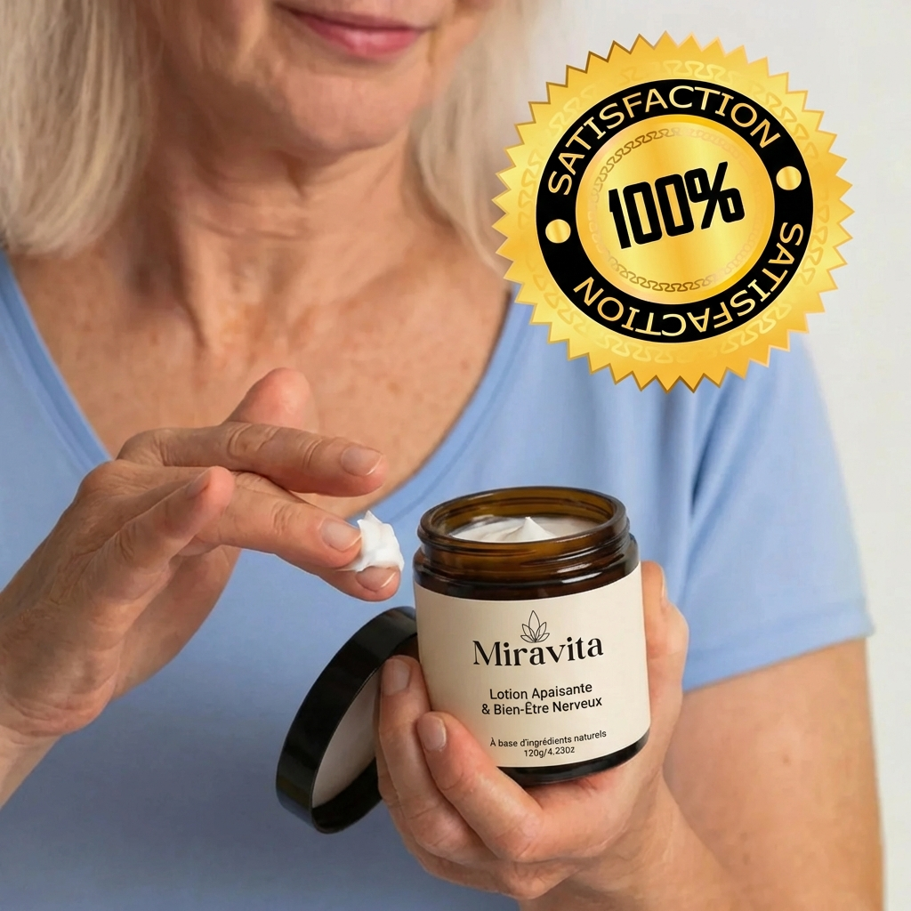 Vous ne devriez pas avoir à reprendre le risque de gaspiller de l’argent pour trouver un soulagement. C’est pourquoi Miravita est accompagnée d’une garantie remboursement intégral de 90 jours. Si elle n’aide pas votre douleur nerveuse, il vous suffit de nous envoyer un e‑mail pour obtenir un remboursement sans aucune question.